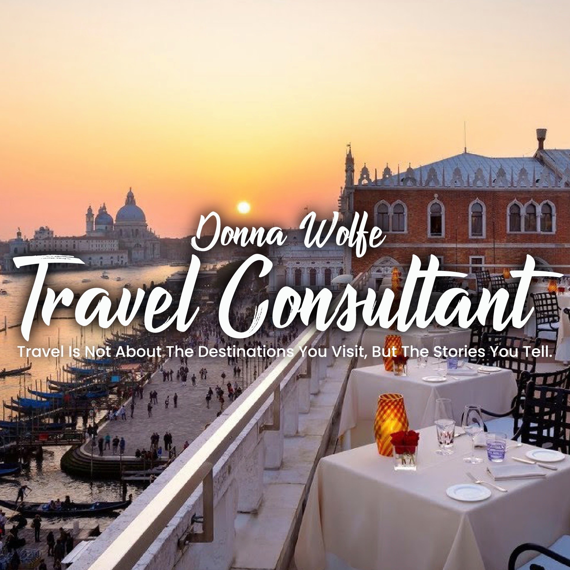 Donna Wolfe is your ‘go to’ luxury advisor who’s passionate about travel. Donna is invested in the process of designing and assisting her clients to create the absolute best travel experience. Working in the travel industry for over 25 years, Donna specializes in luxury leisure, cruises, corporate, group travel, entertainment, honeymoons, multi-generational family travel and adventure. She has developed strong relationships with all travel professionals. The relationships between airlines, hotels, and destination management are the tools and resources that help Donna draw and arrange a customized travel itinerary. Whether it is a last minute getaway or a 6 month world cruise, Donna can design and curate all of your travel! Consider me your personal Concierge who can provide you with the VIP service you deserve!