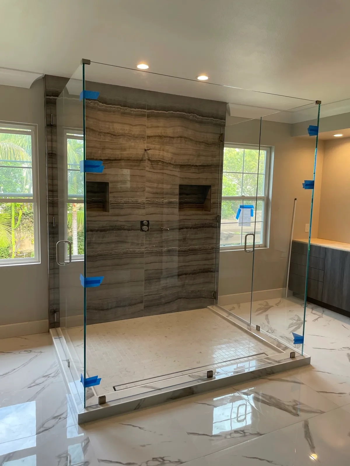 We specialize in shower doors, heavy glass, glass stair panels, mirrors, closet doors, table tops, glass walls, wind breakers, and glass partitions. We can accommodate to any of your glass needs. Try us out, we would love to bid on your project!